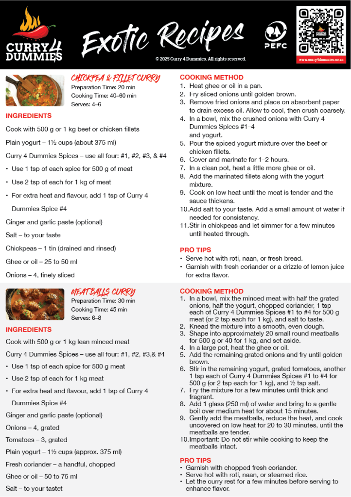 From classic Durban-inspired curries to creative fusions, you’ll have everything you need to impress at the dinner table.